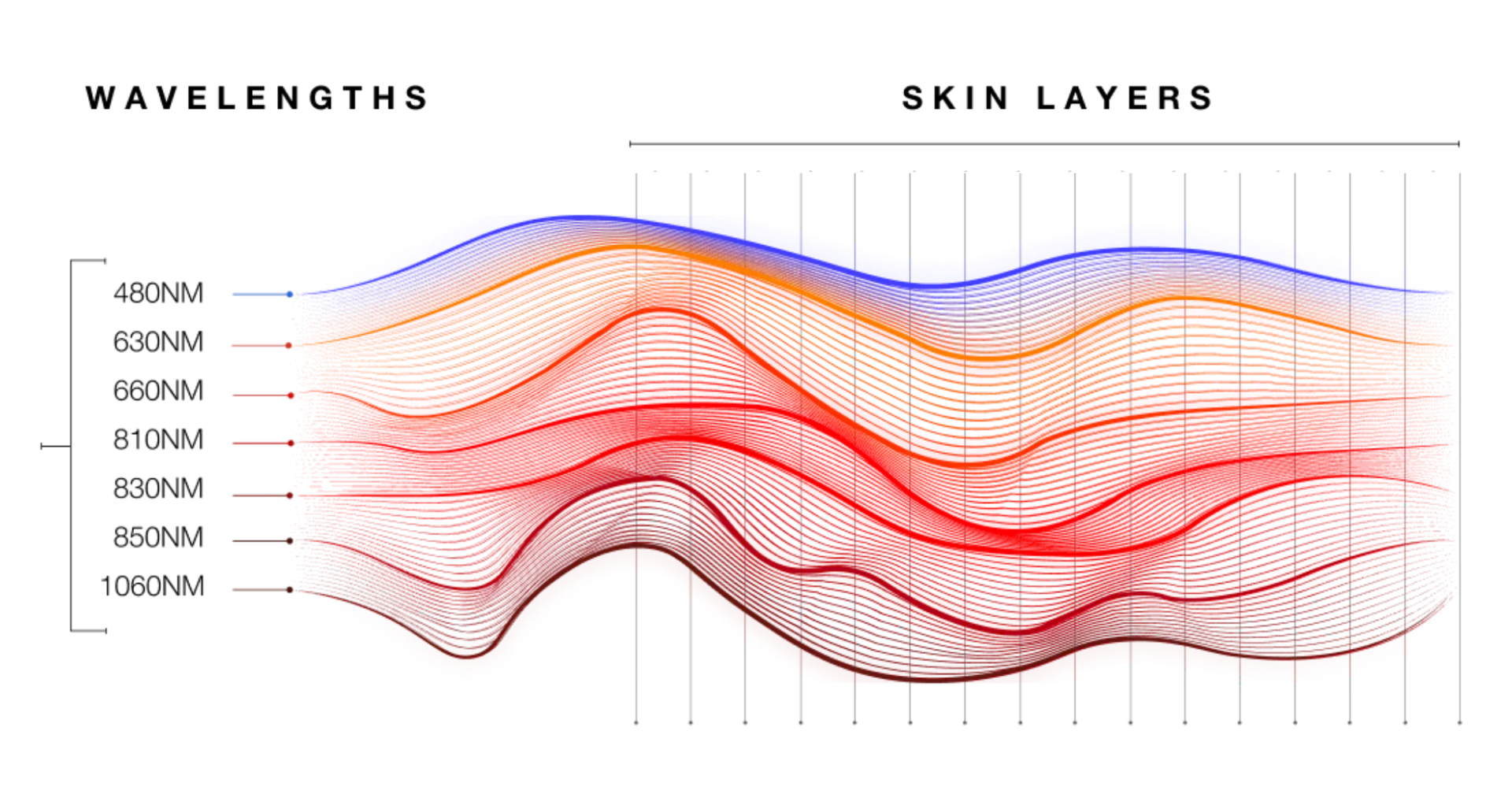 La luz roja y la luz infrarroja cercana (NIR) son longitudes de onda específicas de la luz natural que actúan como "combustible" para las células. Nuestro sistema avanzado utiliza un enfoque multiespectral: